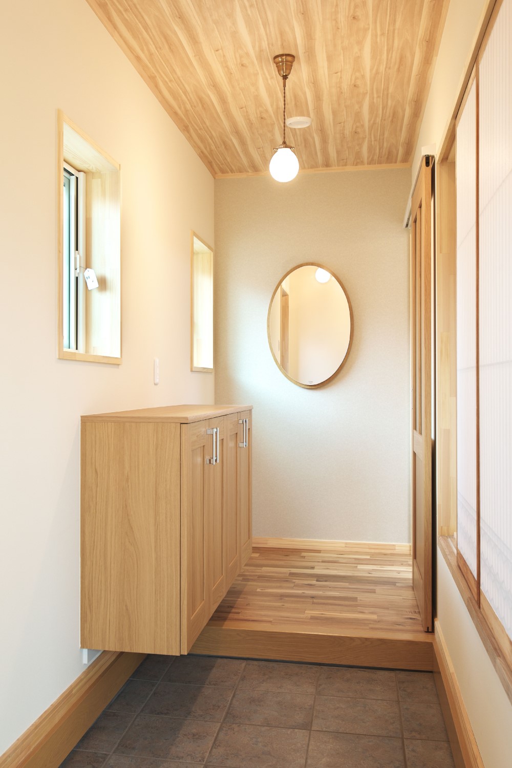 解体した旧家から取り外された障子などの建具や当時のガラスを再利用したお住いは、新築の木の質感との相乗効果が生まれ、趣がありながらナチュラルで明るい住まいになりました。
